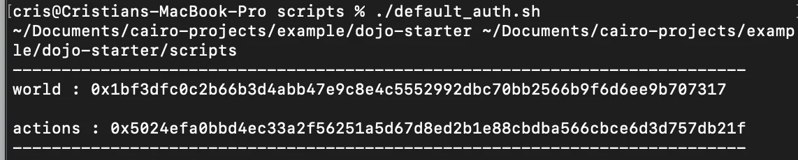 • Verify that the world address in the Scriptable Object located at Assets/Dojo/Runtime/Config/WorldManagerLocalConfig matches the output of the Sozo migrate command.